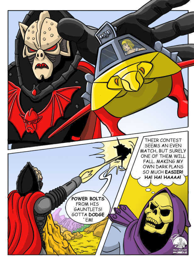 Gefällt mir richtig gut. Erinnert mich an mein eingens Comic. Nur eine Sache hätte ich anderes gemacht. Hätte die Hand von Hordak ganz gezeigt so das sie ganz aus der Seite kommt. Hätte dann mehr tiefe. Kann man sich die anderen Seiten auch schon irgendwo anschauen?