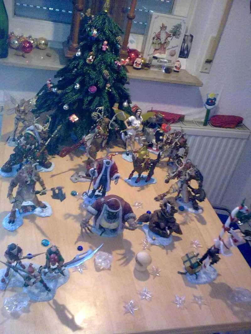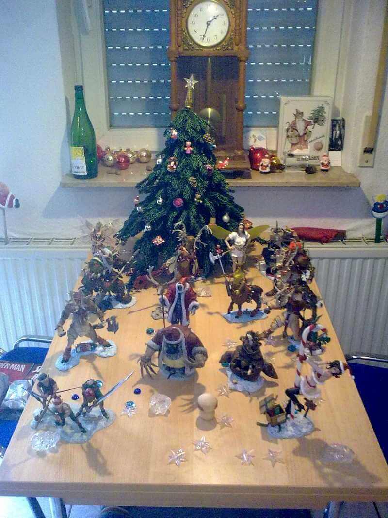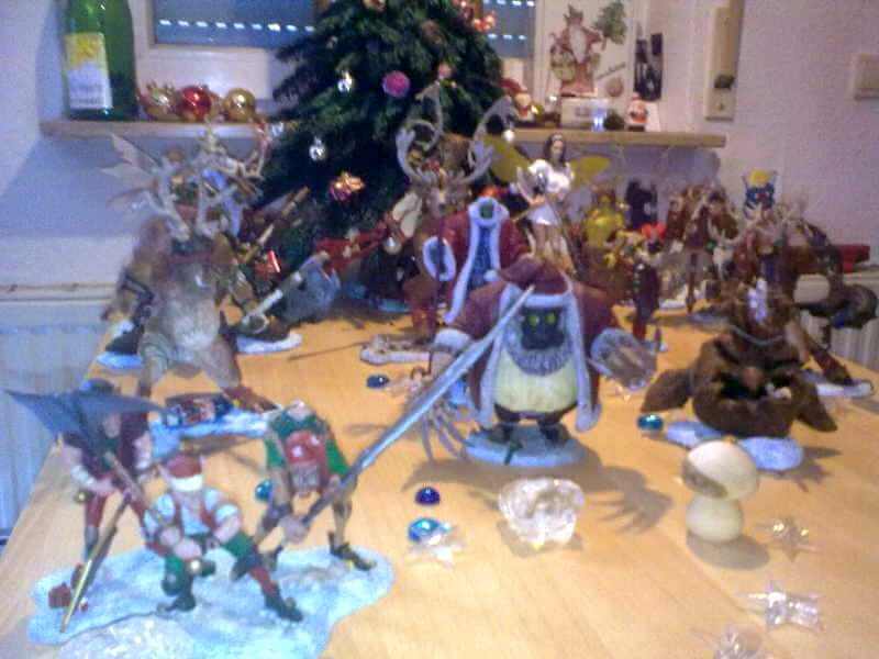 Santa Claus, Mrs. Claus, Die Weihnachtselfen, Der Geschenksack, der Christbaum, die 6 Rentiere, Die Weihnachtsfee, Die Zahnfee, Ein Haufen Geschenke und FLAUSCHITOR (X-Mas Skelli)
