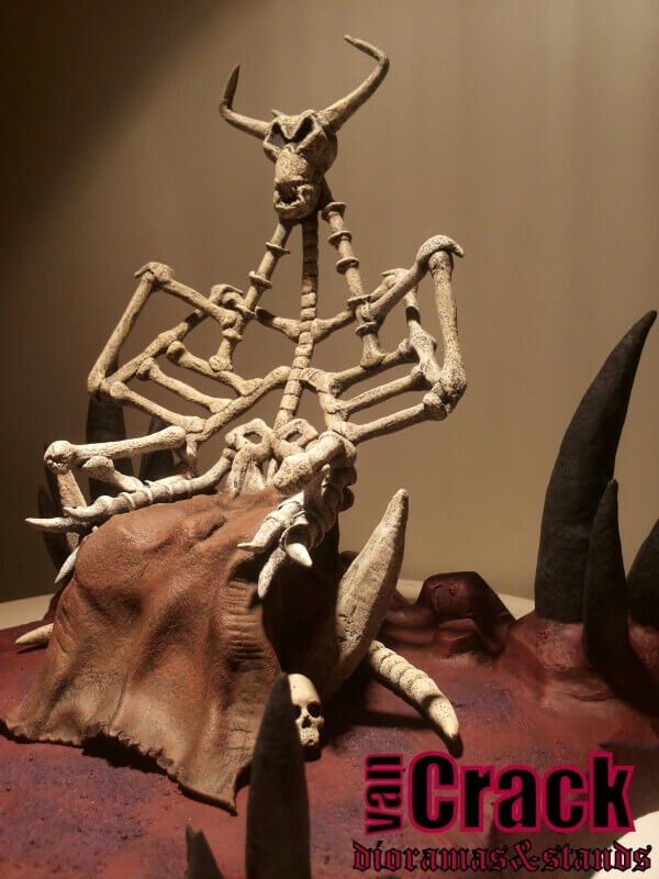 Ich nehm an, dass du damit die Stacheln meinst die aus der base wachsen - bei früheren Dios hab ich die tatsächlich nur aus Styrodur geschnitzt; bei den großen hier wär mir das allerdings zu instabil, weswegen die mit "worbla" verstärkt sind.