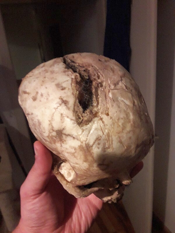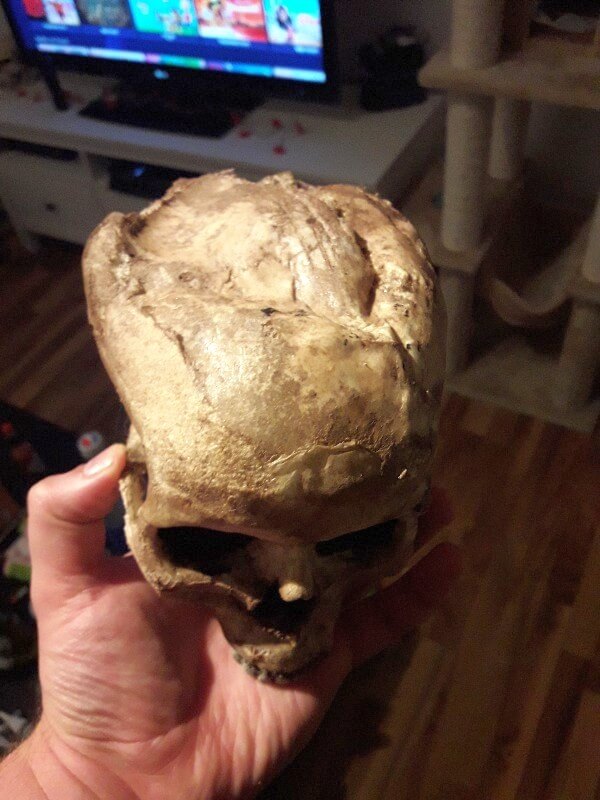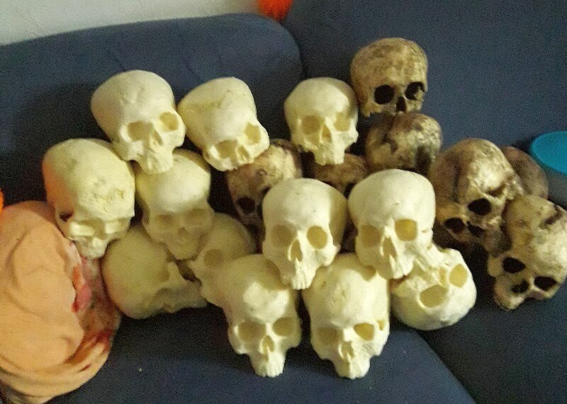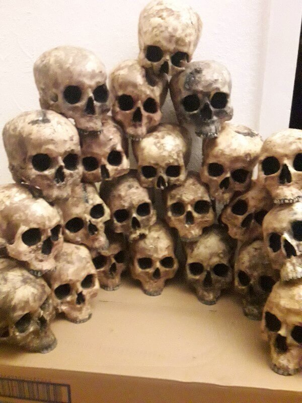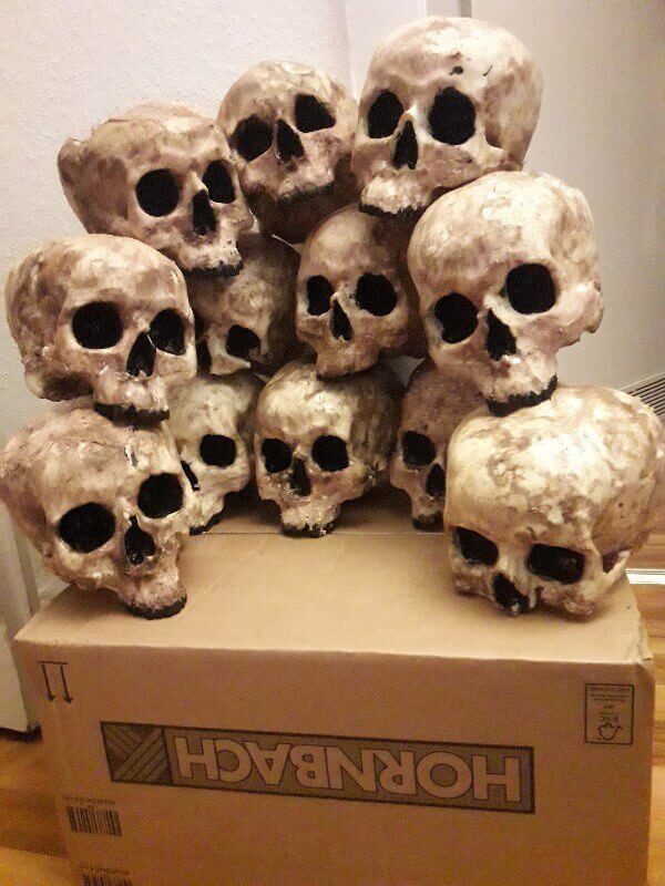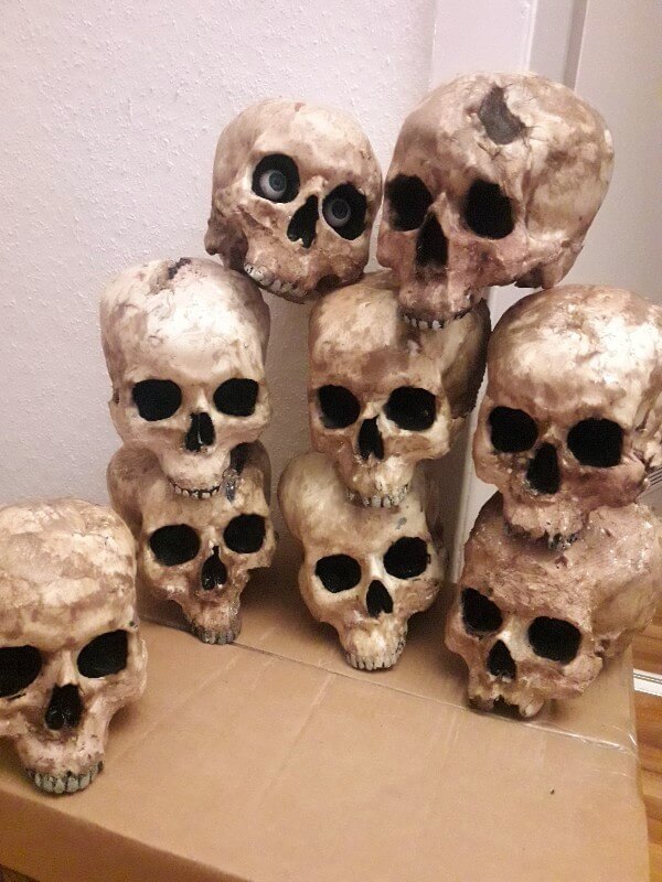 Einige sind etwas lustig geschäumt und haben jetzt ne Delle oder Riss im Schädel. Kann man für unsere Zwecke aber gut gebrauchen. Als Deko für unser Larpork Lager.