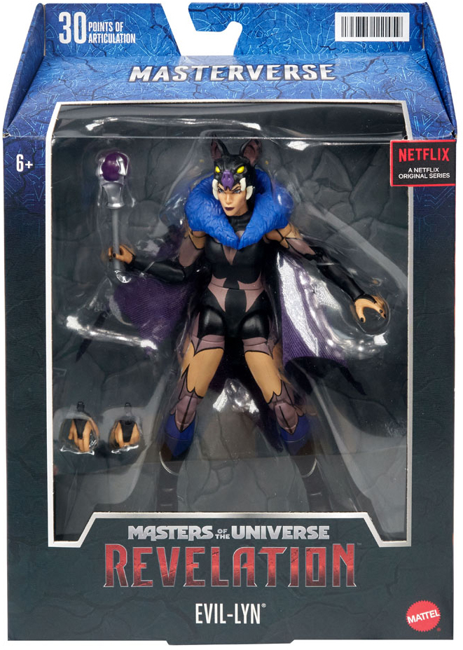 "Auf keinen seiner bösen Krieger verlässt sich Skeletor mehr als auf Evil-Lyn. Sie wirkte an seinem Ziel mit, He-Man zu vernichten und die Macht von Grayskull zu rauben. Für ihre dienste machte Skeletor sie zur neuen Zauberin von Castle Grayskull. Dieses Geschenk enthält aber auch einen Fluch. Als Zauberin ist Evil-Lyn an die Burg gebunden und wird zu ihrer - und Skeletors - Gefangener.