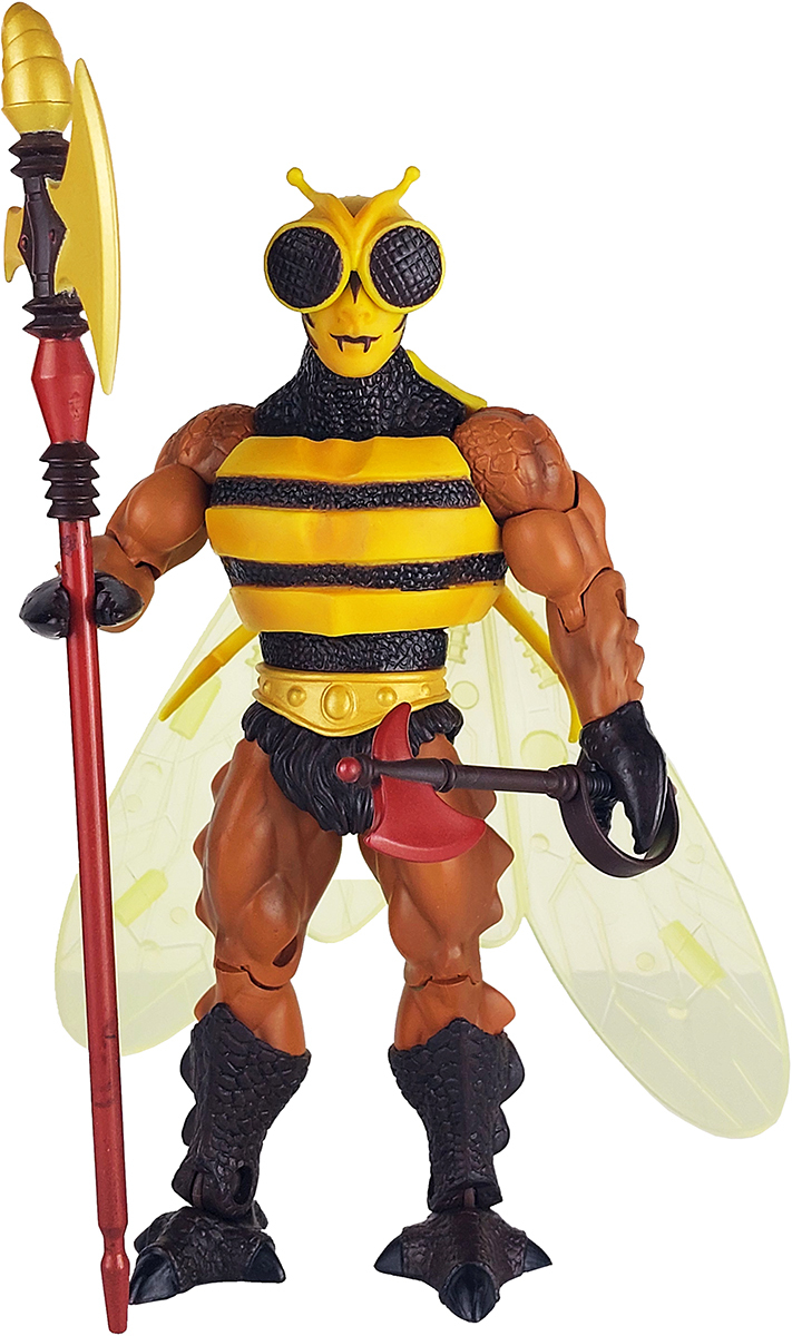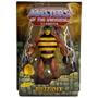 Ausverkauf nach 6 Stunden. Biografie auf der Verpackungsrückseite (deutsche Übersetzung): Wahrer Name: Tzzzt zzz zz zzTTTzz Als heroischer König der Andreeniden, einer bienenartigen Spezies nahe verwandt sowohl mit dem Insektenvolk der Kex als auch den Arachna-Spinnenkriegern, entwickelte sich Tzzzzts Rasse zu erbitterten Kriegern, die ihre Heimat und ihre Ambrosiawaben mit unbeugsamer Erhabenheit behüteten. Obwohl er es zunächst vorzog, die Neutralität seines Volkes zu wahren, lieferte ihm ein von Skeletor ausgelöster Himmelskrieg mehr als genug Anlass, sich mit König Randors Masters of the Universe zu verbünden. Tzzzzt tut sich häufig mit Mekaneck zusammen, indem er seine Flügel für luftgestützte Spionageeinsätze verwendet. |
