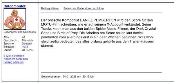 Ich sage jetzt mal, einen weiteren Versuch wird es nicht geben. Nochmal 28 Jahre und wir streiten nicht übder den nächsten MotU sondern über die Konsistenz des Haferbreis und wer den schnellsten Rollator hat (quasi Groundripper Race im Altersheim). Heißt auch wenn der Film nicht das ist was ich und viele andere erhofft haben, wird er der einzige sein den wir noch kriegen. Er sieht nicht nach Billigmurks aus, macht viel Fanarbeit bei neuem modernen Look, also gucke ich ihn mir an und werde sogar dafür mal wieder ins Kino gehen weil es keinen weiteren MotU mehr im Kino geben wird. Ich werde versuchen mich an dem zu erfreuen was MotU Vibes erzeugt und auch mal die Augen verdrehen wenn es nicht meinen Geschmack trifft (MAA stört mich schon jetzt aber nicht der Gute Idris Elba sondern der für mich zu kleine Helm und Rüstung aber das sind Kleinigkeiten beim Design). Und wenn der Film nicht komplett schlecht ist werde ich mir irgendwann sogar die Bluray gönnen um all die versteckten Details finden zu können welche hoffentlich zahlreich sein werden.