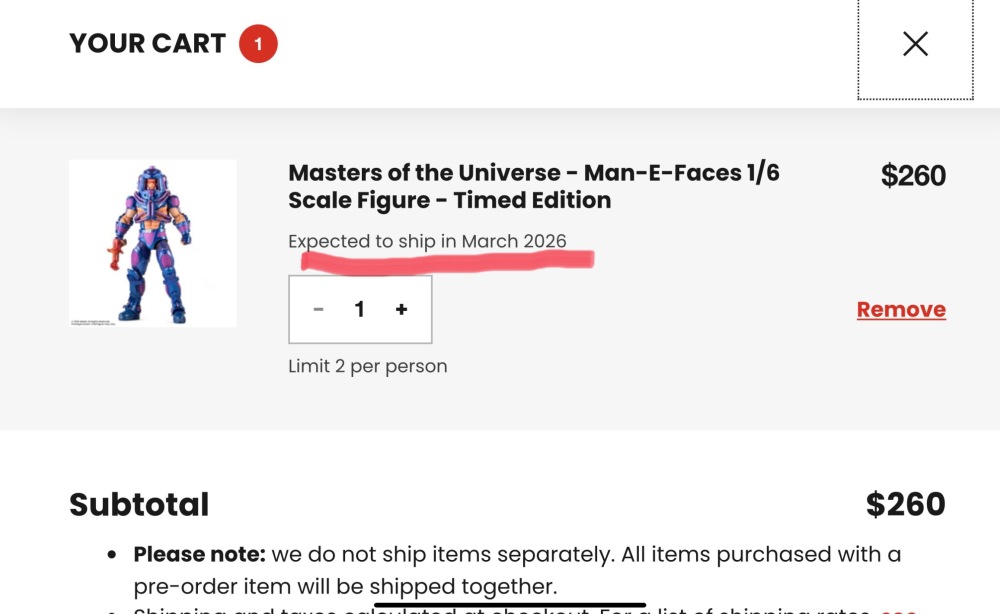 Hatte man nicht mal bei einer Figur nach wohl schleppenden ersten Tagen noch einen Bonusgegenstand nachträglich hinzugefügt ? Vielleicht läuft ja der Vorverkauf hier ähnlich schwach und man ändert die Versandkosten noch. Nicht sehr realistisch, aber man darf ja Hoffnung haben 😄