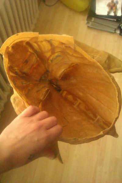 DErzeit arbeite ich auch am "Kragen" Das hier ist eine Schablone deren Maße hinterher mit dem eigentlichen Material übernommen werden. Und wenn man genau hinsieht , sieht man das sei noch etwas breiter wird...Wegen der Knochen