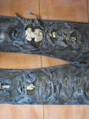 Die Beinschiene ist fertig, die dreckige Schürze mit Blut und Metzgerwerkzeugen ist ferig, die dreckige Hose mit Flicken und Flecken ist ebenfalls fertig- Fehlt bloß noch eine Kaputte Kettensäge, ein Hemd, und eine Krawatte --