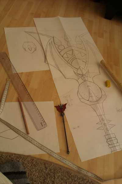 Entwürfe für Hordaks Stab sind auch fertig. Jetzt wird er bald gebaut. Und direkt danach die Rüstung.