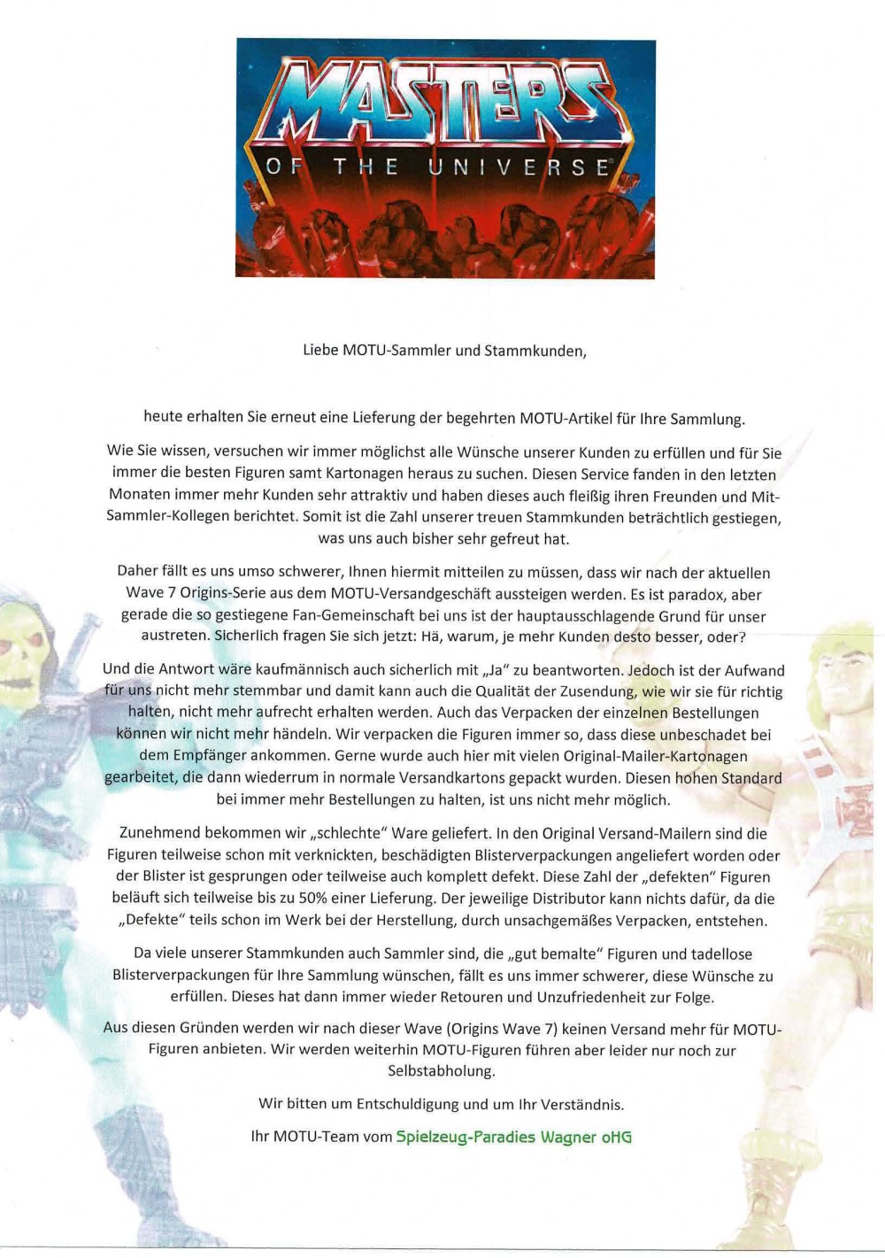 Ist schon lustig, da hat Mattel es endlich einmal geschafft, eine tolle MOTU Line in den Handel zu bringen und dann scheitert es daran.