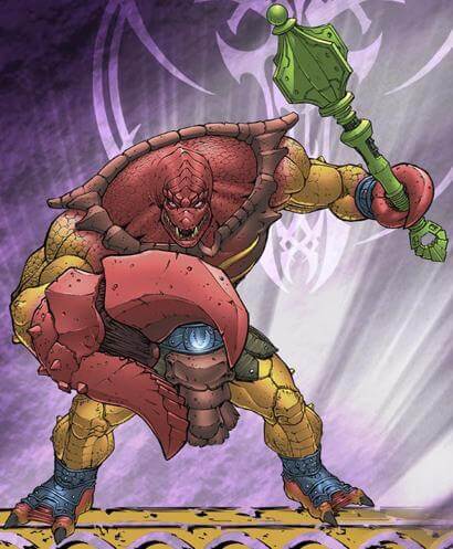 Vintage Figur basiert. Zudem sind die Schultern mit einer schuppenartigen Struktur versehen, während der Lendenschurz mit großen Schalenstücken ausstaffiert ist. Überaus beeindruckend ist die einstige Rüstung, welche nun als Schalenpanzer Teil von Clawful selbst geworden ist.