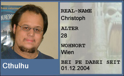 Cthulhu: Während meiner Schulzeit haben wir uns damals das Necronomicon besorgt. Damals noch in dem Glauben das Buch sei echt. Aus diesem Grund haben wir uns auch nicht getraut etwas daraus nachzumachen. Um 2002 herum fiel mir das Buch beim ausmisten wieder in die Hände und mein Interesse stieg, rauszufinden, was da wirklich dahinter war. Also machte ich mich im Internet auf die Suche nach Informationen. Schnell stiess ich dadurch auf H.P. Lovecraft und den Cthulhu Mythos. Dank Amazon waren schnell einige Lovecraft Bücher bestellt. Nach einiger Zeit war fast die gesamte Lovecraft Literatur gelesen. Ein bischen Sci-Fi war auch immer wieder versteckt in seinen Büchern, da immer wieder von grossen Wesen von anderen Sternen die Sprache war. Irgendwann kam ich eben auf die Idee mir einen Nickname zu erstellen, bei dem meine damals grössten Interessen kombiniert wurden, nämlich Star Wars und Lovecraft. So nannte ich mich einige Zeit "darth_cthulhu" in den diversen Fanforen. Als ich mich auf PE registrierte, lies ich halt das "darth" weg, da es ja damals um MotU und nicht um Star Wars ging hier.