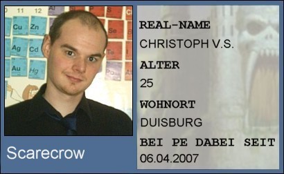 Seine PE Laufbahn begann er unter dem Namen "Horde Mitglied". Heute stellt Scarecrow aka Christoph seine Talente sowohl PE als auch den Schwesternseiten Heldenplanet.de und PlanetDagobah.de zur Verfügung. Reviews aus seiner Feder gibt es derzeit zum MotU Classic Cartoon und zur Batman Animated Series.