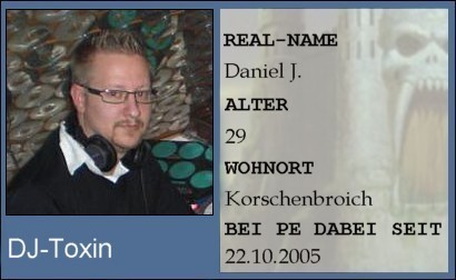 DJ-Toxin: Ich war 2007 beim Treffen NRW in Oberhausen dabei. Ein sehr lustiges Treffen mit wirklich lustigen Leuten. - Ansonsten habe ich es leider nicht geschafft an einen der anderen PE-Treffen teilnehmen zu können. Oft liegt es daran, dass diese Treffen sehr weit weg sind.