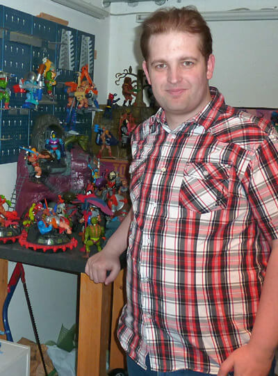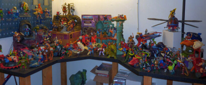 PE war (und ist) wie eine große Spielwiese, auf der nahezu alles möglich ist ? eben wie der Planet Eternia. Je mehr Fans ihren Weg hierher fanden, desto mehr versuchten wir, ihnen möglichst viel MotUtainment zu bieten. Der Aufwand ist dabei schleichend gestiegen, und manches Mal musste mich meine Frau auch etwas bremsen, um ein Wochenende nicht völlig mit PE-Arbeiten auszufüllen. ![]() Abbildung : Reilly?s persönliche Spielwiese Du kannst Dich ja glücklich schätzen, eine Frau zu haben die mehr als nur Verständnis für das Hobby zeigt. manch ein He-Fan kann davon nur träumen. Dennoch, gibt es auch Momente, in denen Du Dir wünschst, Reilly?s würde ein nicht ganz so enormes Engagement für PE an den Tag legen, Verena? HordeGirl: Was meinst Du, warum unser Modem die letzten Jahre immer wieder zufällig kaputt gegangen ist? Naja, wenn?s mir extrem zuviel wird, sag ich?s Sebastian schon. Solange auch noch Zeit für die Familie bleibt und er nicht nur sein Essen runterschlingt und sich dann stundenlang vor den PC sitzt, ist es schon okay. Ich versuche, ihm mit seinem Hobby weitgehend Freiheit zu lassen. Andere Männer gehen schließlich Kegeln oder zur Feuerwehr, und die Figuren sind halt sein Hobby. Solange er nicht auch noch Fotos von nackigen Mädels sammelt, ist?s mir weitgehend egal. Du warst damals sehr aktiv im PlanetEternia RPG. Wie hatte es angefangen und was hatte Dich lange Zeit am Rollenspiel gefesselt? HordeGirl: Ich hatte früher schon an Live-RPG?s teilgenommen, insofern fand ich die Idee ganz lustig, das Ganze auch mit MotU und online zu probieren. Gefesselt hat mich die Rolle an sich, die Marlena war von der Spielleitung her mit ihrer ganzen "Forbidden Love" Hintergrundgeschichte für mich interessant angelegt und hat mich schließlich auch zu einem Fanfic inspiriert ("Vorbei"). Was war der Grund für Deinen Ausstieg, hattest Du eine kreative Pause nötig? Wie stehen die Chancen auf eine Wiederkehr von HordeGirl im RPG? HordeGirl: Es gab kein konkretes Ereignis, ich hab halt gemerkt, dass die Lust irgendwann nachgelassen hat. Und dann tut man weder sich noch den anderen einen Gefallen, wenn man trotzdem weitermacht. Es hatte sich für mich irgendwann totgelaufen. Ich könnte mir grundsätzlich schon vorstellen, wieder mitzumachen, weiß aber nicht, worum sich die Geschichte gerade dreht und habe durch meine drei Kinder, Haushalt und Job momentan auch nicht viel Zeit. Das Schreiben von Geschichten liegt Dir aber weiterhin im Blut, denn Du warst und bist noch immer ein Garant für qualitative FanFictions. Natürlich immer mit dem weiblichen Touch, so war es nie verwunderlich wenn die Romantik nicht zu kurz kam. Was war Dir an Deinen MotU Geschichten immer besonders wichtig? HordeGirl: Du Sack hast keine meiner Geschichten kommentiert! Mit so was red ich gar nicht! Nein, Spass beiseite. Schön, dass Du es so siehst, dass die Geschichten Qualität haben. Aber ist denn soviel Romantik drin? Meine Hauptcharaktere prügeln sich in der Regel mehr, als dass sie sich "Oh Edward!" und "Oh Bella!" zurufen.