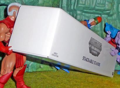 Castle Grayskull hätten stammen können, machen die Stackable Stands eher den Eindruck eines alten, aber gut gepflegten Bodens im Erdgeschoss. In ihrer Form erinneren die Stands an Siegertreppchen, da sie in drei Platten unterteilt sind und die mittlere etwas erhöht gesetzt ist. Dies hat zur Folge, dass die Stackable Stands eher für die Vitrinensammler unter den Auspackern geeignet sind, und somit eher weniger als Ergänzung für lebhafte Dioramen passen.
