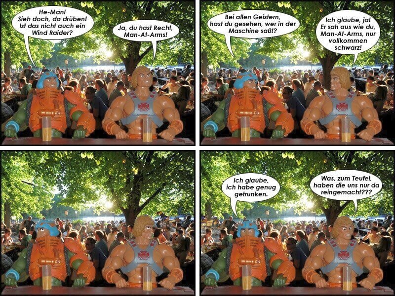 In der Mitte (über dem Bierglas) wird doch nicht etwa mit blondem wallenden Haar She-Ra sitzen ... wahrscheinlich seh ich schon auf jedem Gruppenbild irgendjemanden aus dem Motu-Universum
