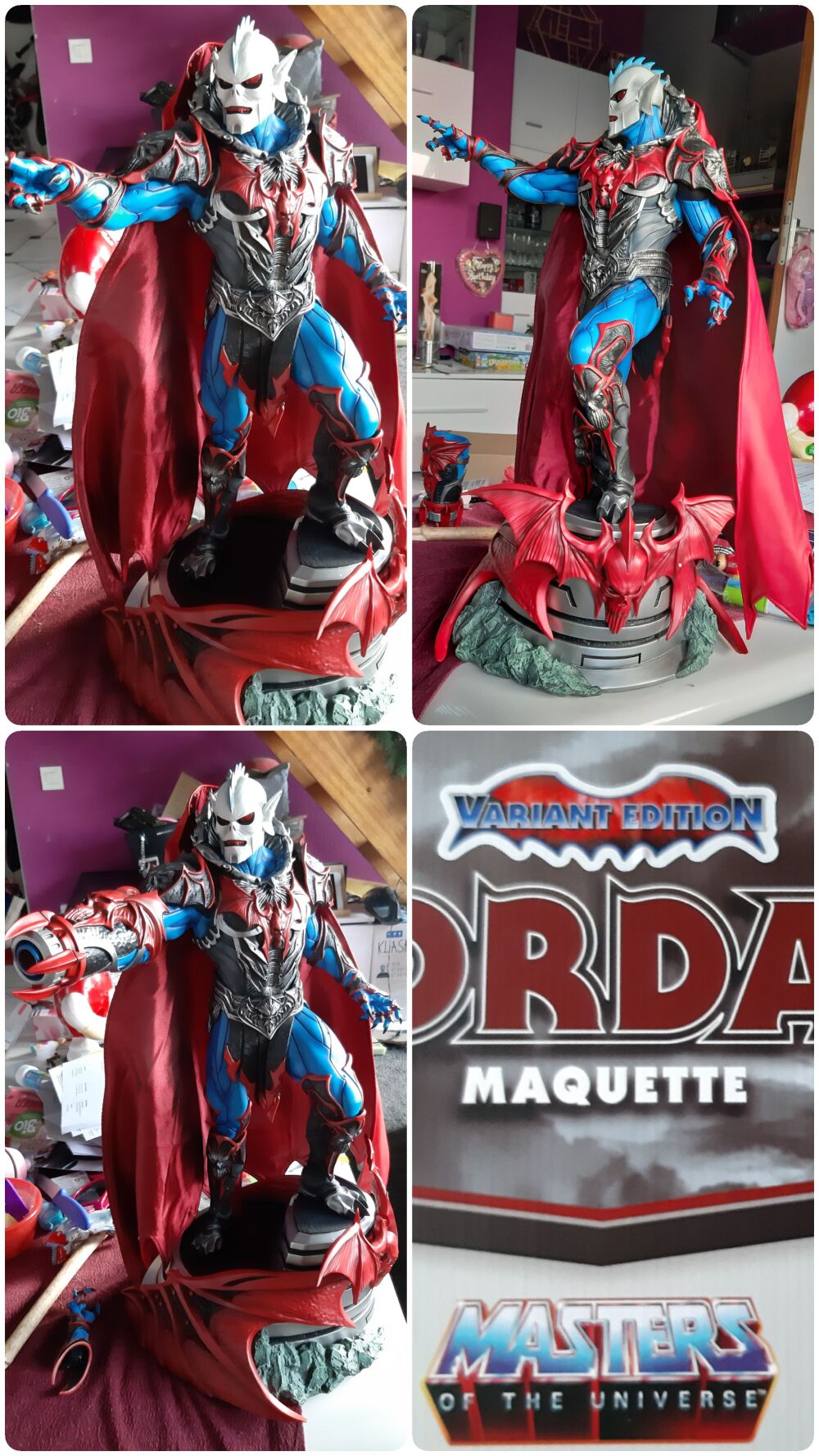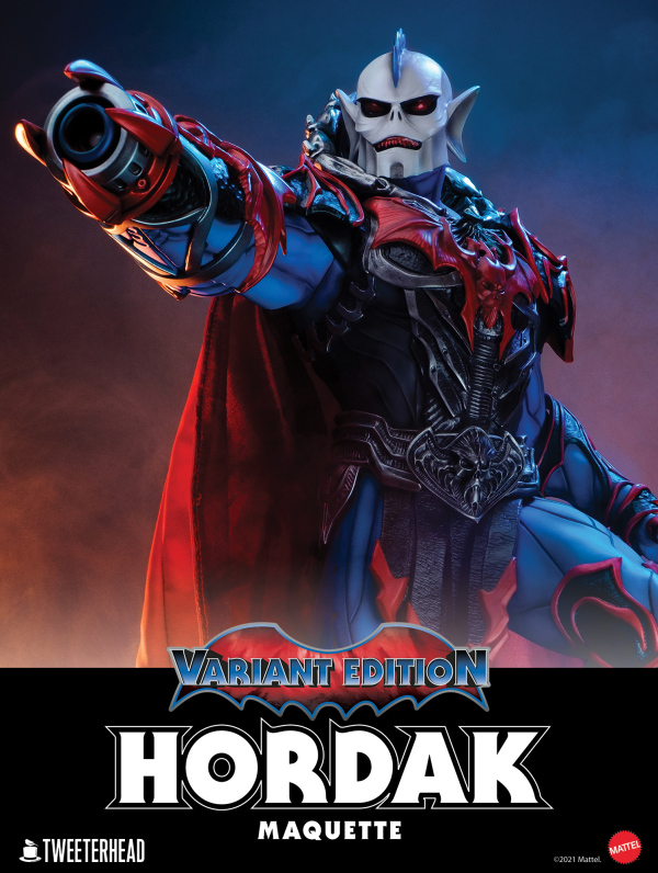 Von der zuvor erschienenen Hordak-Statue von Tweeterhead unterscheidet sich die Variant Edition durch den fehlenden regulären Kopf und natürlich die blaue Farbgebung der zuvor grauen Haut und einen komplett roten Umhang. Auch die linke Wechselhand mit dem Horde-Stab fehlt offenbar.