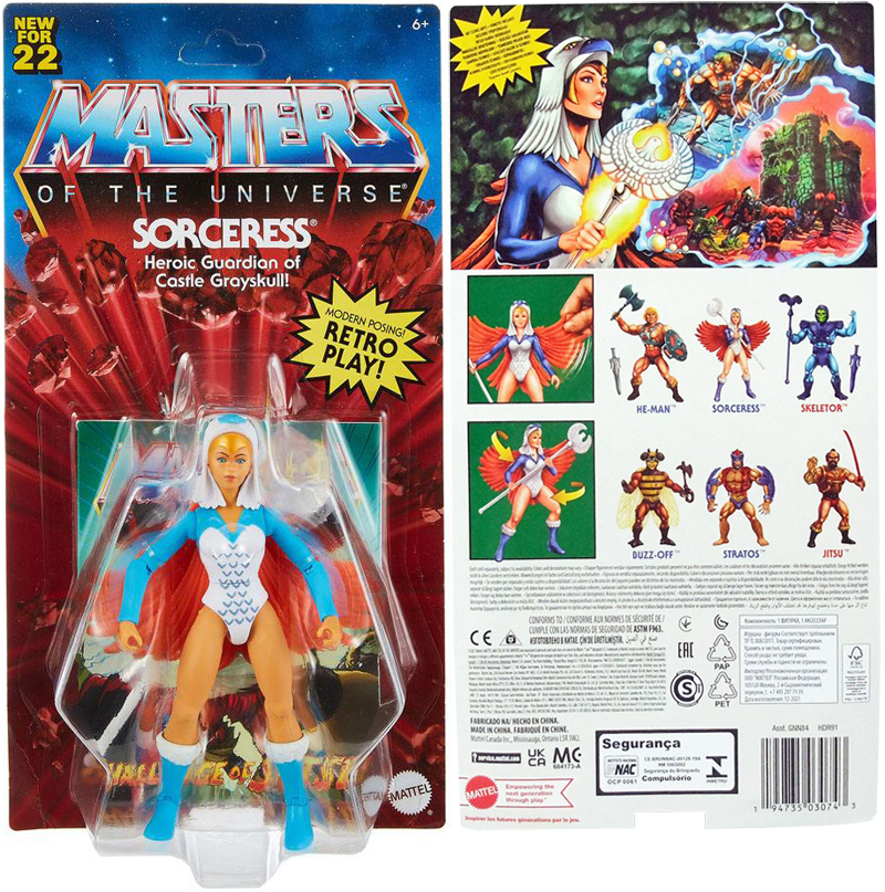 Die Zauberin von Grayskull ist seit Start des Filmation Cartoons fester Bestandteil nahezu jeder Masters Geschichte. Ihren Ursprung hat sie sogar noch früher, wenn auch mit anderem Aussehen und etwas anderer Rolle. Die bekannteste Version der Zauberin ist aber im Falkenkostum als Hüterin der Burg und Mutter von Teela. Ihre Vintage-Figur erschien damals erst 1987 zum Ende der Toyline. Bei den