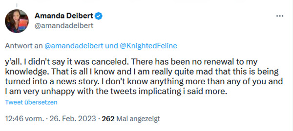 Meines Erachtens hat die Dame die Eigendynamik im MotU-Fandom und den davon getriebenen News-Seiten etwas unterschätzt. Das Wort "cancel" klickt halt definitiv besser als "not renewed" und das ist halt nicht ganz dasselbe. Naja, ab sofort wird sie wohl einfach keine Fragen mehr zum MotU CGI-Cartoon auf Netflix beantworten, sollte sie weiterhin Teil des Autorenteams sein.