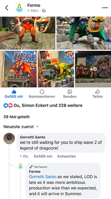 Wie im November 2023 berichtet besteht die Wave 2 der Legends of Dragonore - Actionfiguren von Formo Toys im Stil der Vintage-Masters of the Universe, ursprünglich als Lords of Power geplant - wie Wave 1 aus sechs Figuren und bei jeder liegt ein Teil der Build-a-Figure "Second Divine Armor of Power" bei.