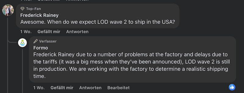 Mittlerweile sind wir im Sommer und Wave 2 verspätet sich weiter - wegen Zollchaos und Produktionsproblemen. Es gibt aktuell offenbar noch keinen neuen Termin für die Auslieferung.
