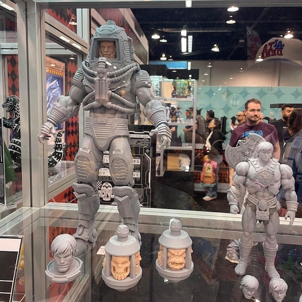 Toys 1:12 200X He-Man- und 1:6 Man-E-Faces-Prototypen am WonderCon-Stand von Mondo