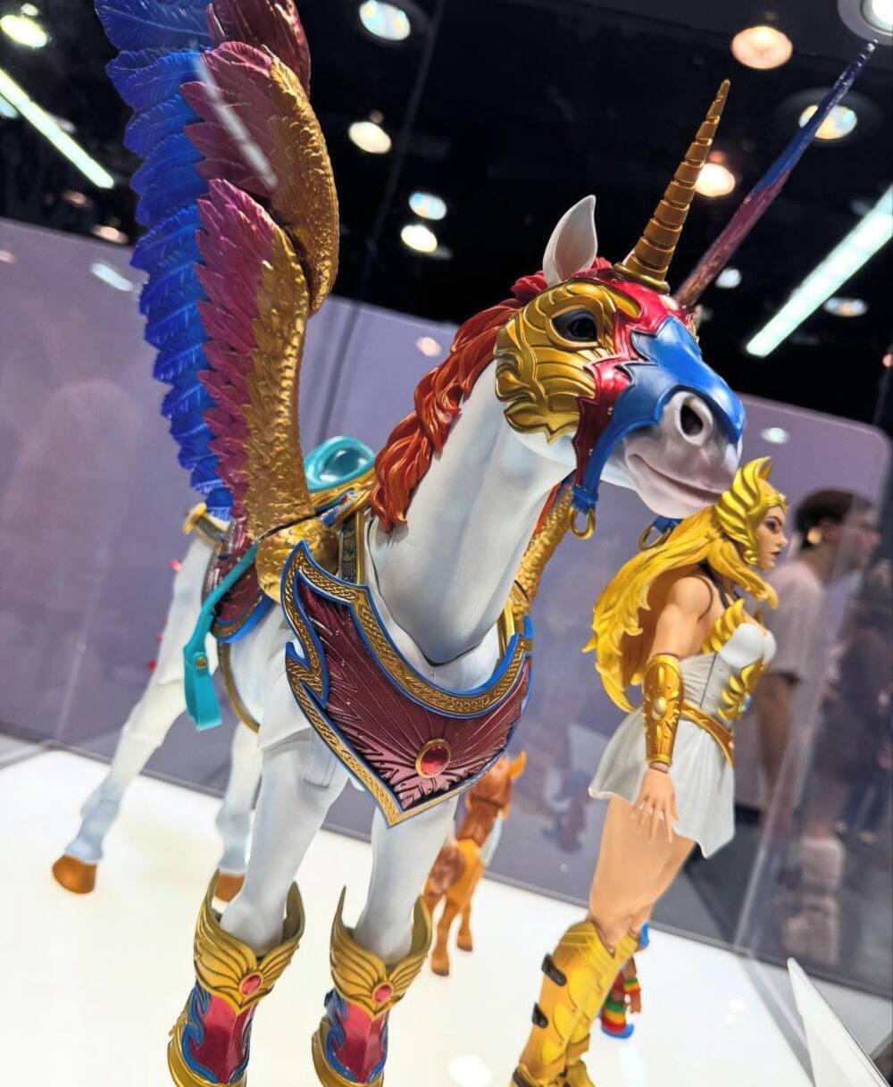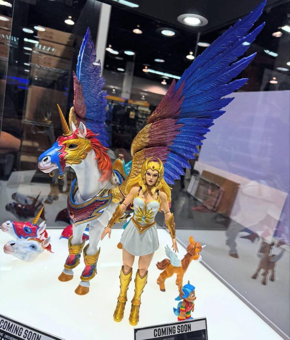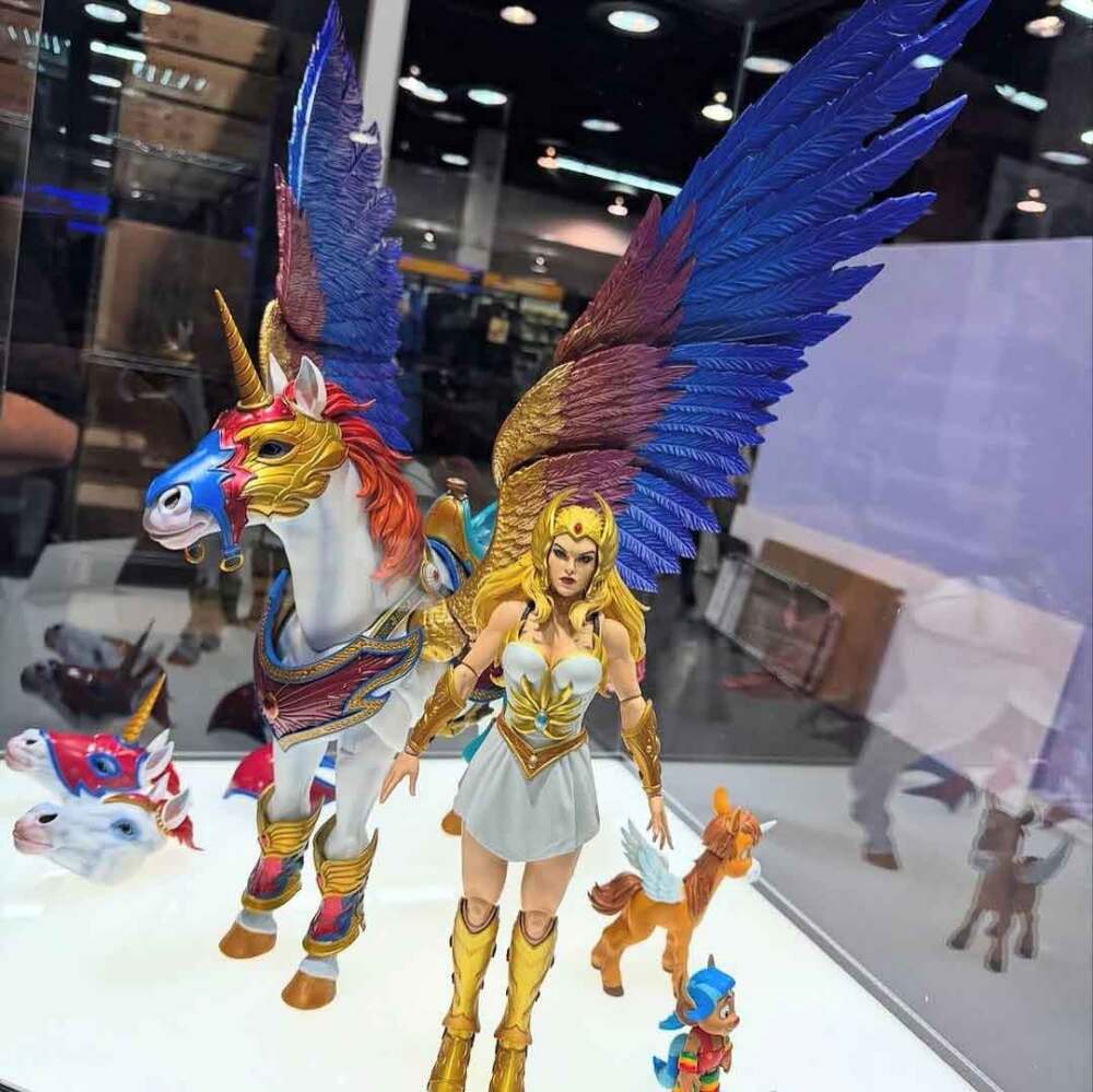 Nachtrag: Nach dem WonderCon-Panel hat Mondo die Filmation-Version der dort angekündigten Deluxe She-Ra sowie Swift Wind mit seinen Wechselköpfen und Zusatzfiguren direkt ausgestellt.