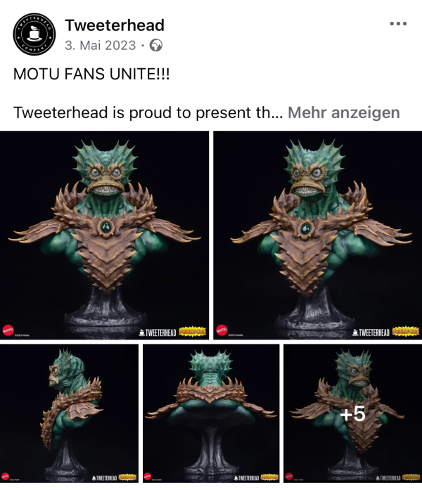 Power-Con-exklusiven Mer-Man-Büste im Maßstab 1:5 inoffiziell gestartete Reihe von kleineren MotU-Büsten erwähnt - diese soll sehr bald offiziell angekündigt werden.