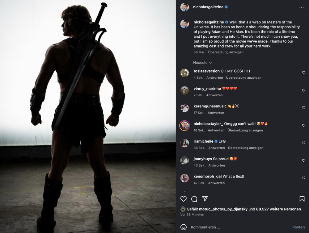Im Artikel steht ja "He-Man-Darsteller Nicholas Galitzine hat anlässlich des Abschlusses seiner Dreharbeiten..."