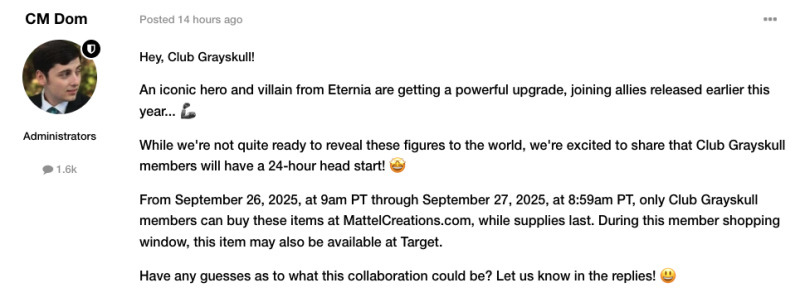 Vielleicht auch schon heute 18:00 Uhr, aber bei Mattel Creations weiß man ja nie.