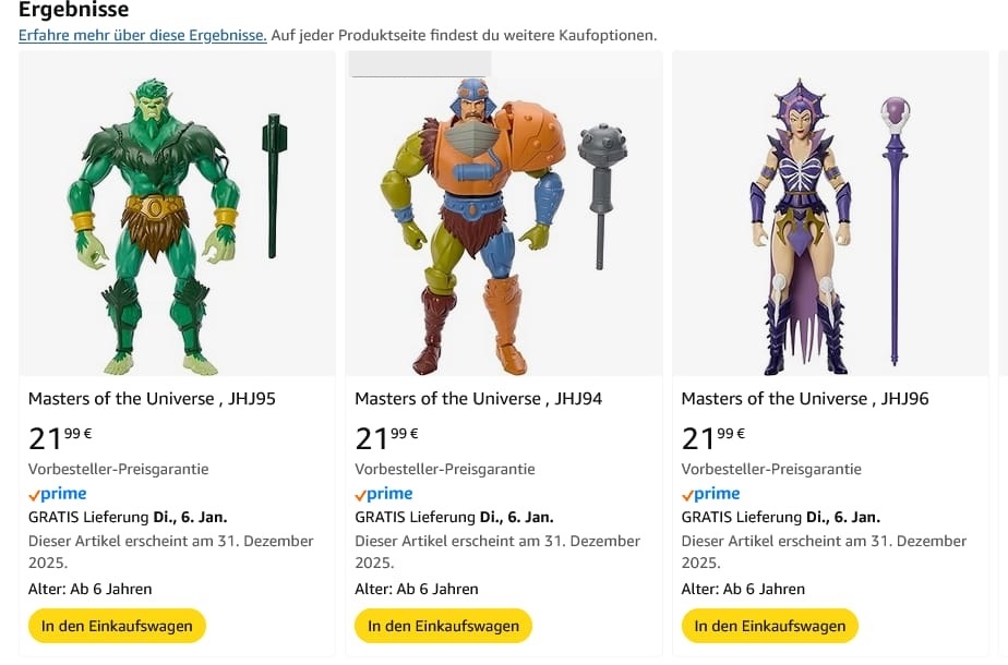 Nachtrag: über diese Links kann man die drei 200X Cartoon Collection-Figuren direkt bei Amazon.de aufrufen, aber noch nicht wieder vorbestellen: