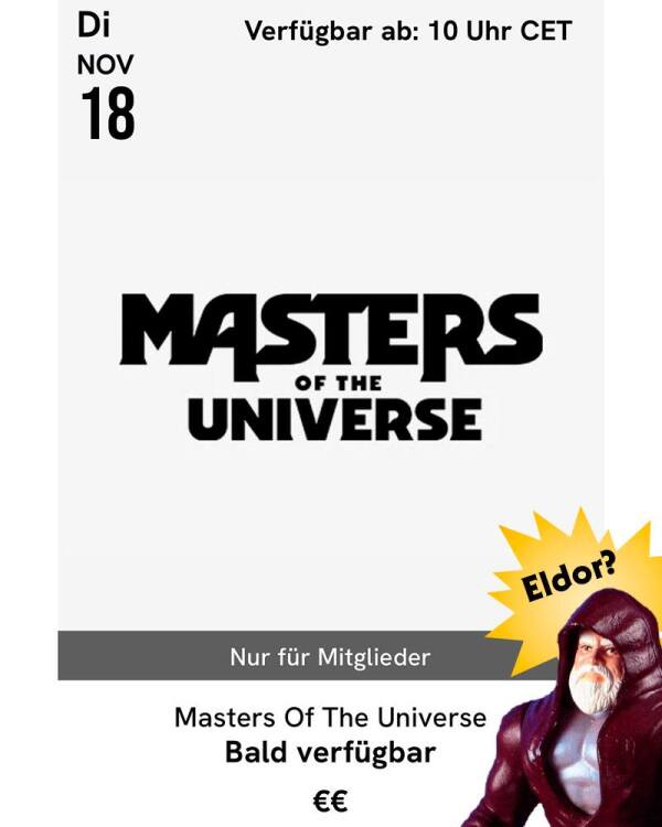 Wie im Artikel geschrieben: dadurch dass in der Launch Calendar-Listung für 18. November "Nur für Mitglieder" bzw. "Members only" steht, ist der Artikel ein komplettes Club Grayskull-Exclusive und nicht nur für 24 Stunden. Bei denen steht nämlich "Exklusiver 24-Stunden-Zugang für Mitglieder" bzw. "Member Only Access 24 Hours" wie jetzt bei Sting-Or. Die einzigen kompletten Club Grayskull-Exclusive-Figuren sind die Powers of Grayskull-Figuren. Daher ist davon auszugehen, dass im November eine Powers of Grayskull-Figur kommt.