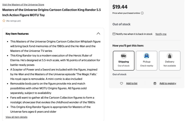 Hatte auch schon befürchtet, es gäbe keine Filmation Figuren mehr, dafür die 200x Mike Young Figuren (die allerdings auch toll aussehen). Deshalb sehr gute Nachrichten! Habe auch noch keinen Filmation Randor, und Cartoon Collection ist dann doch um einiges günstiger als die alten Club Grayskull Figuren.