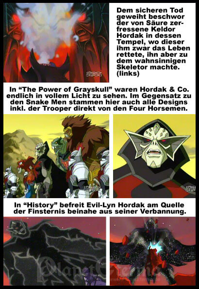 Fragte man vor Jahren die Fans, welche Charaktere als nächstes in der 200x-Toyline erscheinen müssten, war Hordak mit großer Sicherheit unter den absoluten Spitzenreitern. So verwunderte es nicht, dass MVCreations in den Comics Hinweise erfolgten und in Ausgabe 6 (Vol.3, "Dark Reflections") Hordak samt einiger Mannen zumindest einen in Schatten gehüllten Kurzauftritt absolvierten. Auch der Cartoon tat bereits in Staffel 1 seinen Teil, ein Kommen der Wilden Horde anzudeuten. So erfuhr man in Folge 24, dass Hordak mit Hilfe seiner Magier einst den ?Spell of Separation? entfesselt hatte und ungewollt beinahe den ganzen Planeten entzwei gerissen hatte, bevor er den Zauber stoppte (so entstand die Dunkle Hemisphäre, in welche später die Kämpfer des Bösen verbannt wurden). Statt der Horde wurden aber - bedingt dadurch dass "Snake Pit" (Folge 21) die bis dahin höchste Einschaltquote erzielt hatte - in Staffel 2 zunächst nur die Snake Men eingeführt. Doch Hordak schien unaufhaltsam heranzurücken, und nach einem weiteren knappen Gastspiel in "The Price of Deceit" (Folge 32), trat er in "The Power of Grayskull" (Folge 35) endlich gänzlich in Erscheinung. Hier wurde erzählt, wie Hordak & Co. in grauer Vorzeit zunächst die Schlangenmenschen bezwungen und dann King Grayskull - gewissermaßen He-Man?s Urahn - bekämpft hatten. Letzterer aber konnte die Feinde in die Dimension "Despondos" schleudern, in welche Hordak eigentlich Burg Grayskull hatte verbannen wollen. Hordak selbst warf durch diesen Auftritt einige Diskussionen auf. Nicht nur dass man sich uneinig war, ob King Grayskull tatsächlich Hordak?s Körper zerstört hatte bevor dieser von Despondos verschluckt wurde, auch waren nicht wenige Altfans irritiert, dass der neue Hordak ein Vollblutmagier zu sein schien, was er im She-Ra Cartoon eigentlich nie und selbst in den Minicomic eher im begrenzten Umfang gewesen war.