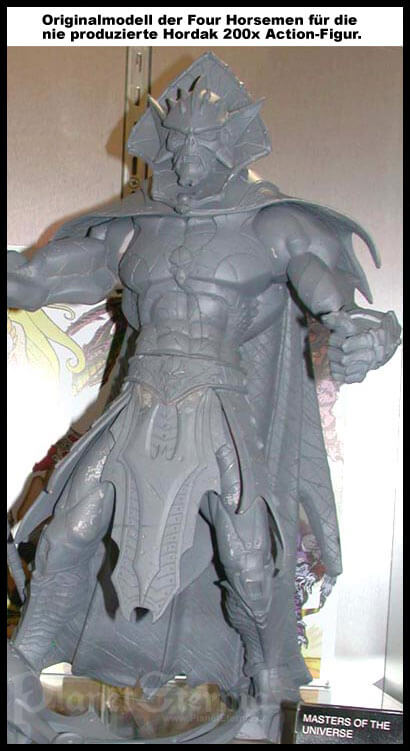 Leider blieb es bei diesen Auftritten sowie abschließenden Gastspielen in "History" (Folge 38) und Comics (Nr.1 & 2, Vol.3), ehe Cartoon, Heftreihe und natürlich auch Spielzeugserie eingestellt wurden. Was die weiteren Pläne für Hordak betraf, brachte im Späsommer ?05 Dean Stefan von MYP zumindest ein wenig Licht in das Dunkel, als er die grundlegenden Ideen und Pläne enthüllte, die man vorbereitet hatte. So war tatsächlich geplant, dass es Evil-Lyn bei einem weiteren Versuch tatsächlich gelingen sollte, die Horde aus Despondos nach Eternia zu bringen! Skeletor, welcher zu dieser Zeit gerade selbst endlich die Macht über den Planeten errungen hatte, wäre sogleich von Hordak gestürzt worden, und fortan hätten die Masters als Vogelfreie gegen die neue Besatzungsmacht kämpfen müssen. Erinnert beinahe an den früheren She-Ra Cartoon (für die Prinzessin der Macht bestanden im übrigen noch keine näheren Pläne). Obwohl sich Hordak aber auch in seiner 200x-Inkarnation großer Beliebtheit erfreute, verwehrte Mattel den Fans eine Action-Figur. Zwar boten die Four Horsemen im Sommer 2004 eine Hordak Büste an und präsentierten neben anderen Charakteren ihre Originalmodell einer neuen Hordak Action-Figur, selbige wurde von Mattel aber nicht mehr produziert (die Toyline galt schon zum damaligen Zeitpunkt als eingestellt).